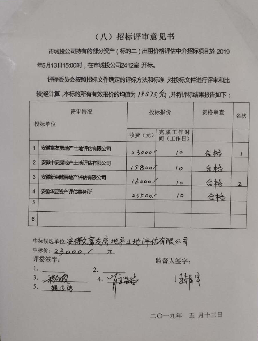 市城投公司持有的部分資產(chǎn)(標的二)出租價格評估中介招標項目結果公示