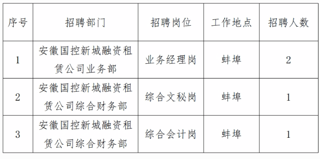 安徽國控新城融資租賃有限公司2024年社會招聘公告