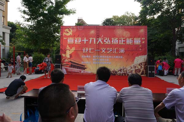 為喜迎建黨96周年和十九大勝利召開,進(jìn)一步激發(fā)黨員群眾的愛國主義情懷,增進(jìn)基層黨組織的凝聚力和戰(zhàn)斗力,6月29日,市城投公司組織全體黨員與結(jié)對共建單位經(jīng)開區(qū)萬榮社區(qū)共同開展“喜迎十九大,弘揚正能量”迎七一文藝匯演活動,現(xiàn)場氣氛活躍,表演者們載歌載舞,用動聽的歌聲和柔美的舞蹈詮釋出在黨的光輝照耀下一片國泰民安的祥和景象。