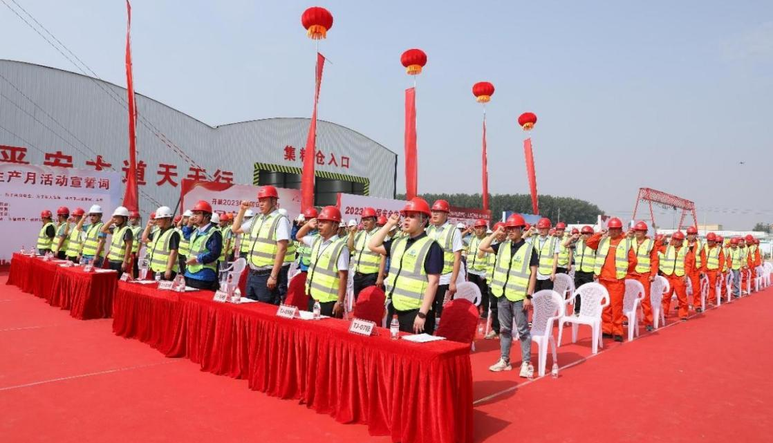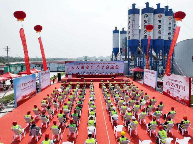 2023年6月1日,五蒙高速公司在固鎮(zhèn)縣TJ-04標(biāo)拌合場(chǎng)站內(nèi)舉辦2023年安全生產(chǎn)月活動(dòng)啟動(dòng)儀式,活動(dòng)主題為“人人講安全、個(gè)個(gè)會(huì)應(yīng)急”。五蒙高速公司全體成員及各參建單位代表參加,市交通運(yùn)輸局、市交通質(zhì)監(jiān)大隊(duì)領(lǐng)導(dǎo)出席活動(dòng)。