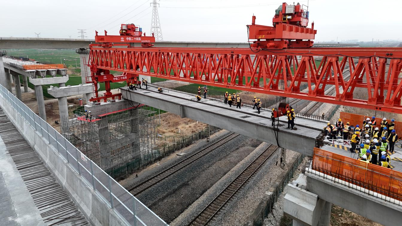 項目位于蚌埠市固鎮(zhèn)縣,全長1.988千米,由中鐵二十四局負責項目實施。京滬鐵路每日通行約140對列車,為確保鐵路運營不受干擾,單日封鎖施工時間有限,需要在100分鐘內(nèi)完成兩片高2米、長40米、重170噸的箱梁架設(shè)任務(wù),施工難度高、安全風險大。